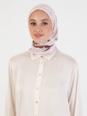 Peressa Yavruağzı Kahve Şal Desenli Eşarp