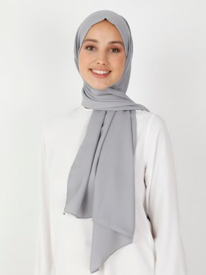 Balse Eşarp Gri Simli Medine İpeği Şal
