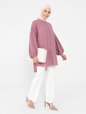Refka Vişne İpek Tuşeli Balon Kollu Tunik
