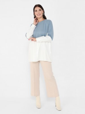 Alia Atlas Ekru Büyük Beden Düğme Detaylı Garnili Tunik
