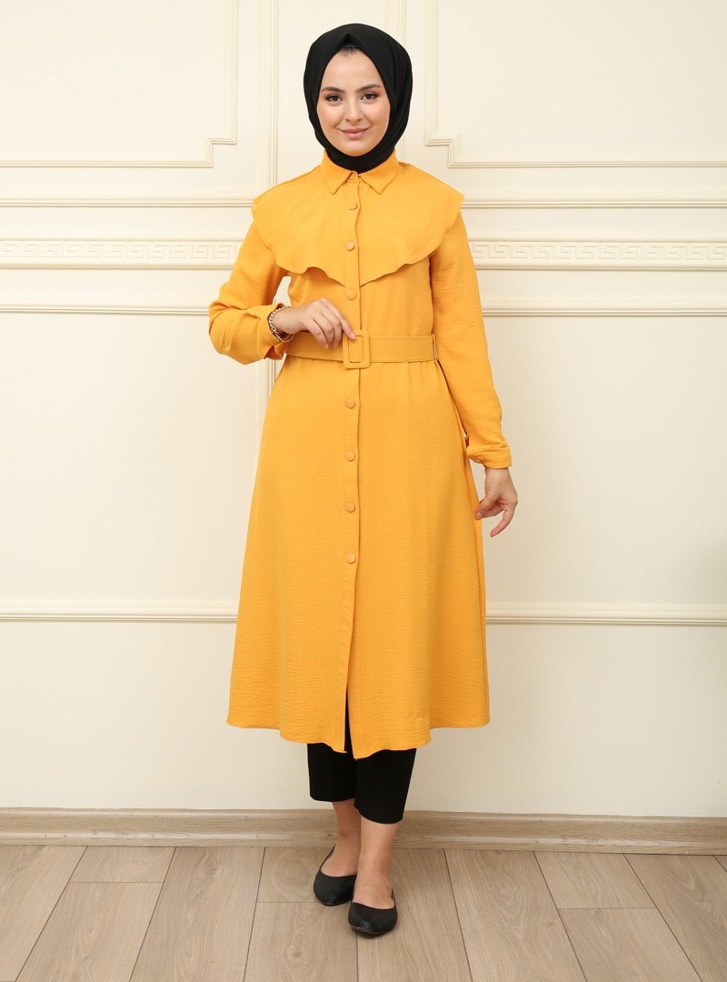 Moda Dua Hardal Kemerli Kap