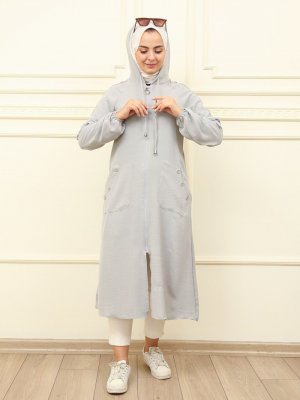 Moda Dua Gri Kapüşonlu Kap