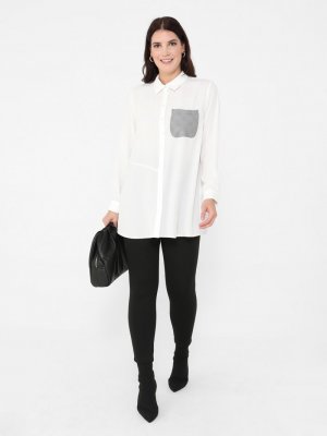 Alia Ekru Büyük Beden Cebi Ekose Desenli Garnili Tunik