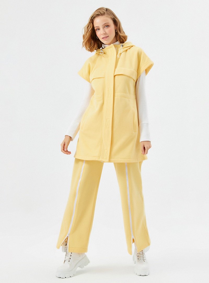 Muni Muni Sarı Polar Dokulu Kapüşonlu Yelek