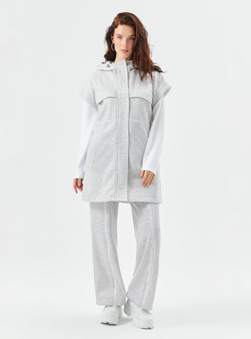 Muni Muni Gri Polar Dokulu Kapüşonlu Yelek