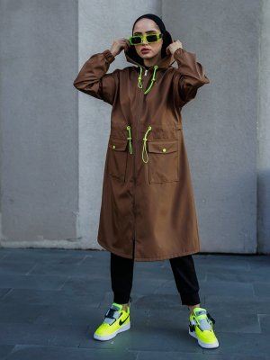 Topless Taba Şeritli Neon Detaylı Yağmurluk
