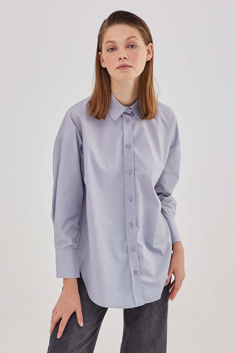 Hooopstore Gri Basıc Gömlek