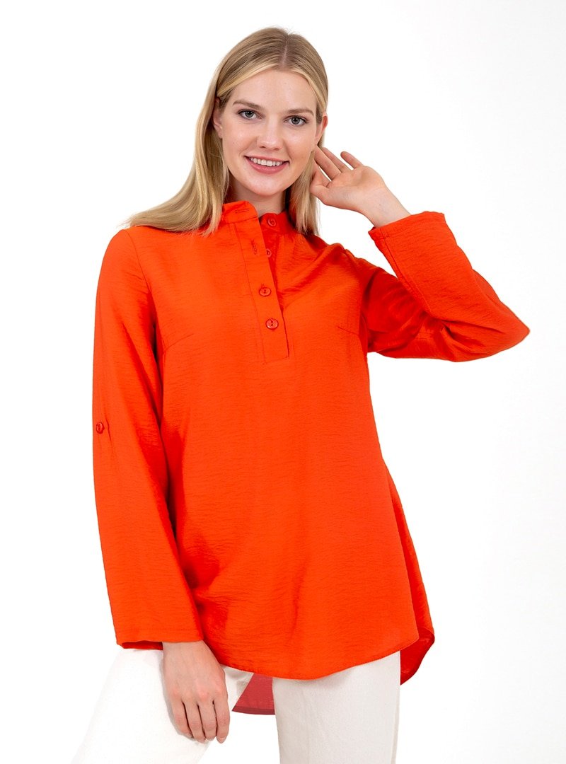 ONX10 Turuncu Yaka Detaylı Gömlek