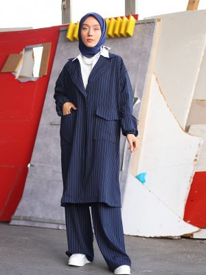 Ceylan Otantik Lacivert Çizgili Ceket & Pantolon İkili Takım