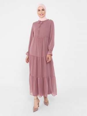 Refka Mürdüm Yakası Bağlamalı Rahat Kesim Şifon Elbise