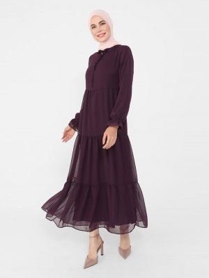Refka Mor Yakası Bağlamalı Rahat Kesim Şifon Elbise