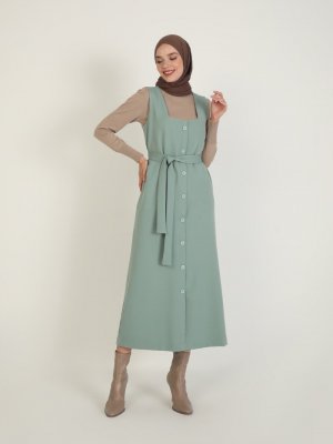 İnşirah Mint Yeşili Kuşak Detaylı Kolsuz Elbise