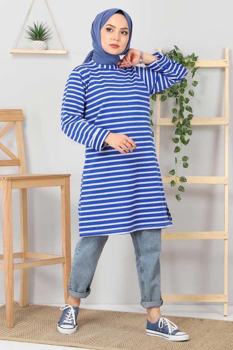 Tesettür Dünyası Mavi Çizgili Tunik