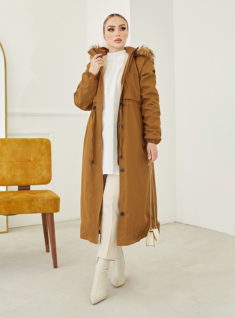 MODAEFA Taba Kapüşonlu İçi Kürklü Kaban