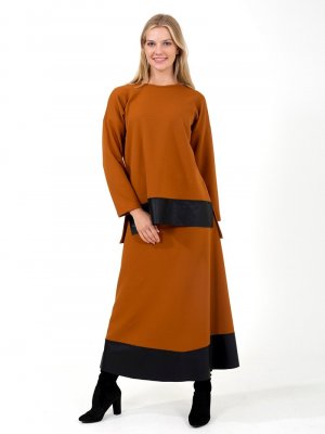 ONX10 Taba Deri Garnili Tunik & Etek İkili Takım