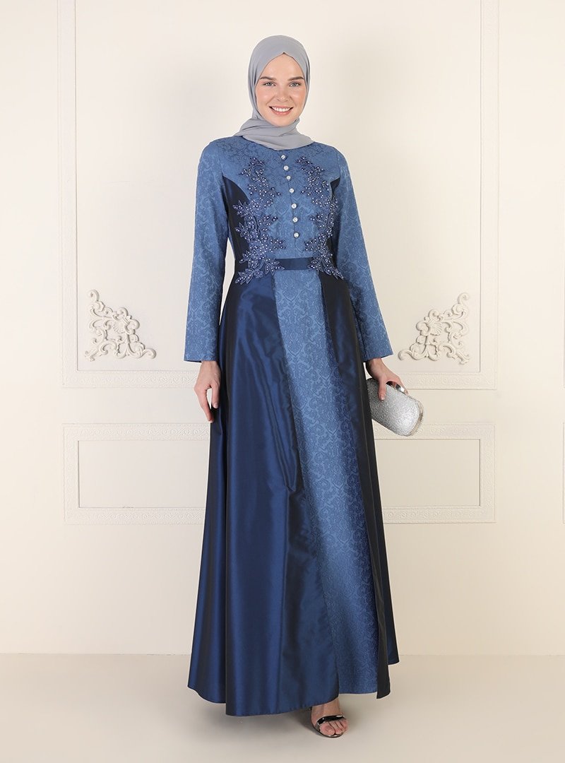 ENSANUR MODA İndigo Boncuk Detaylı Abiye Elbise