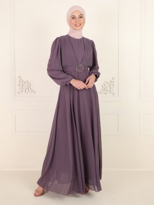 Amine Hüma Lavanta Kemer Detaylı Abiye Elbise