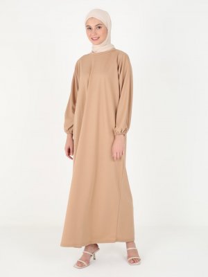 SULTANE Bisküvi Kol Uçları Lastikli Elbise Ferace