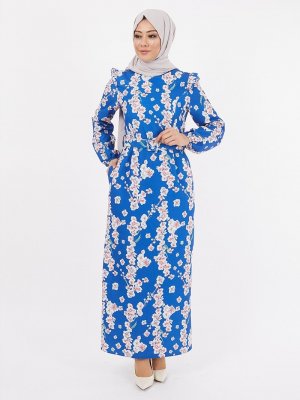 TESETTURİUM İndigo Dijital Baskılı Krep Elbise