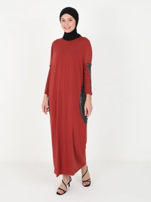 MODAGÜL Kiremit Payet Detaylı Elbise