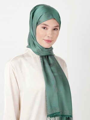 Soft Scarfs Zümrüt Gümüş Çiçek Jakarlı Şal