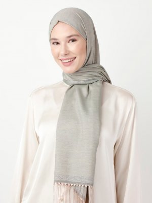Soft Scarfs Bej Çiçek Jakarlı Şal
