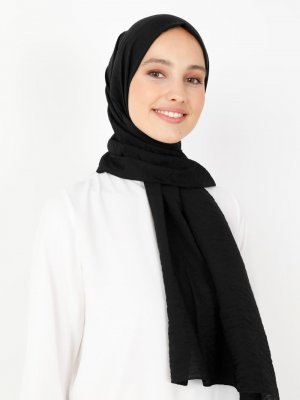 ELFECR Siyah İpeksi Taşlı Cazz Şal
