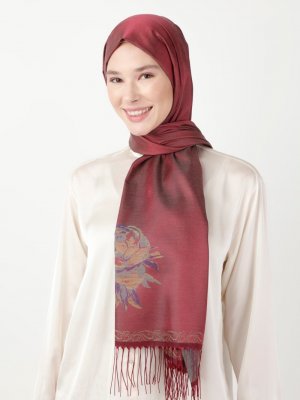 Soft Scarfs Açık Bordo Çiçek Jakarlı Şal