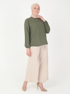 ENSANUR MODA Haki Kol Uçları Lastik Detaylı Tunik
