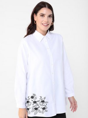 Alia Beyaz Büyük Beden Nakış Detaylı Pamuklu Tunik