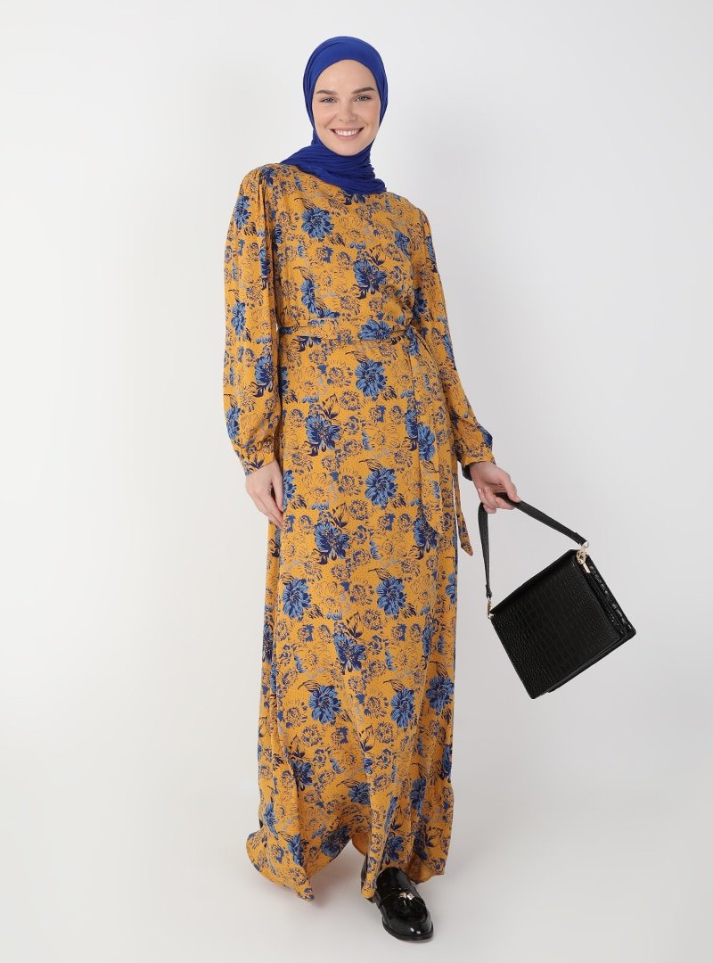 Ziwoman Sarı Çiçek Desenli Elbise