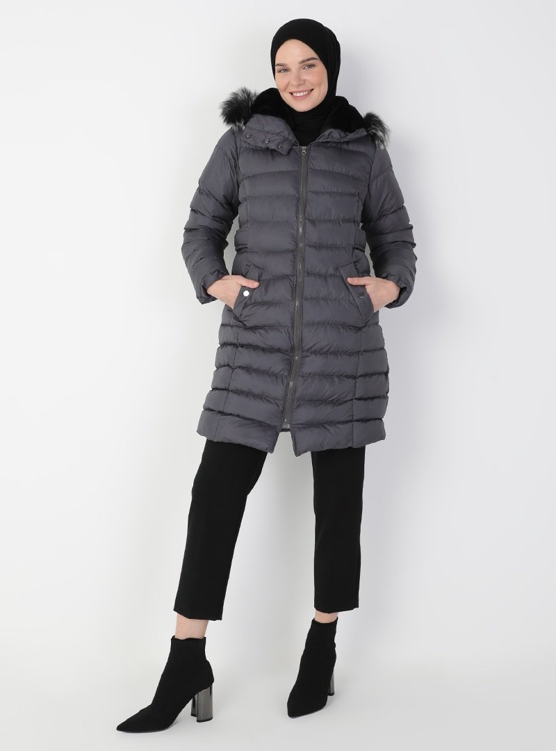 Concept By Olcay Antrasit Şapkası Kürk Detaylı Kaban