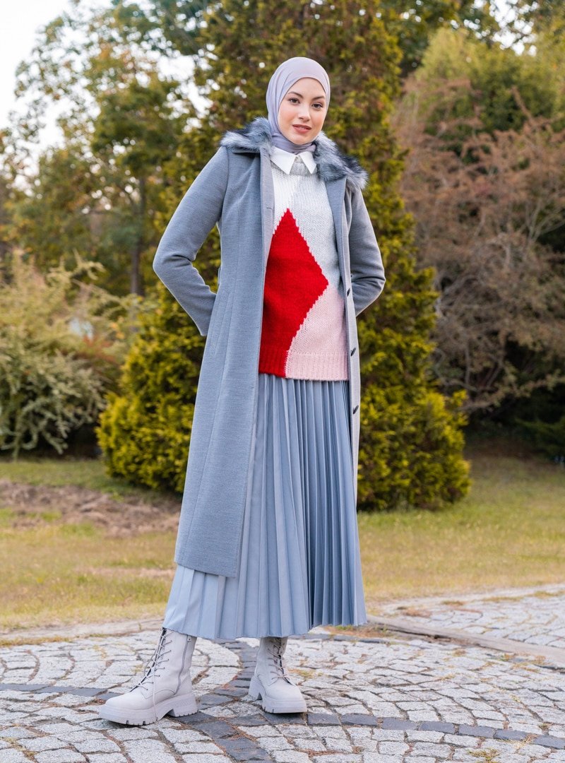 Concept By Olcay Gri Kürk Detaylı Kaban