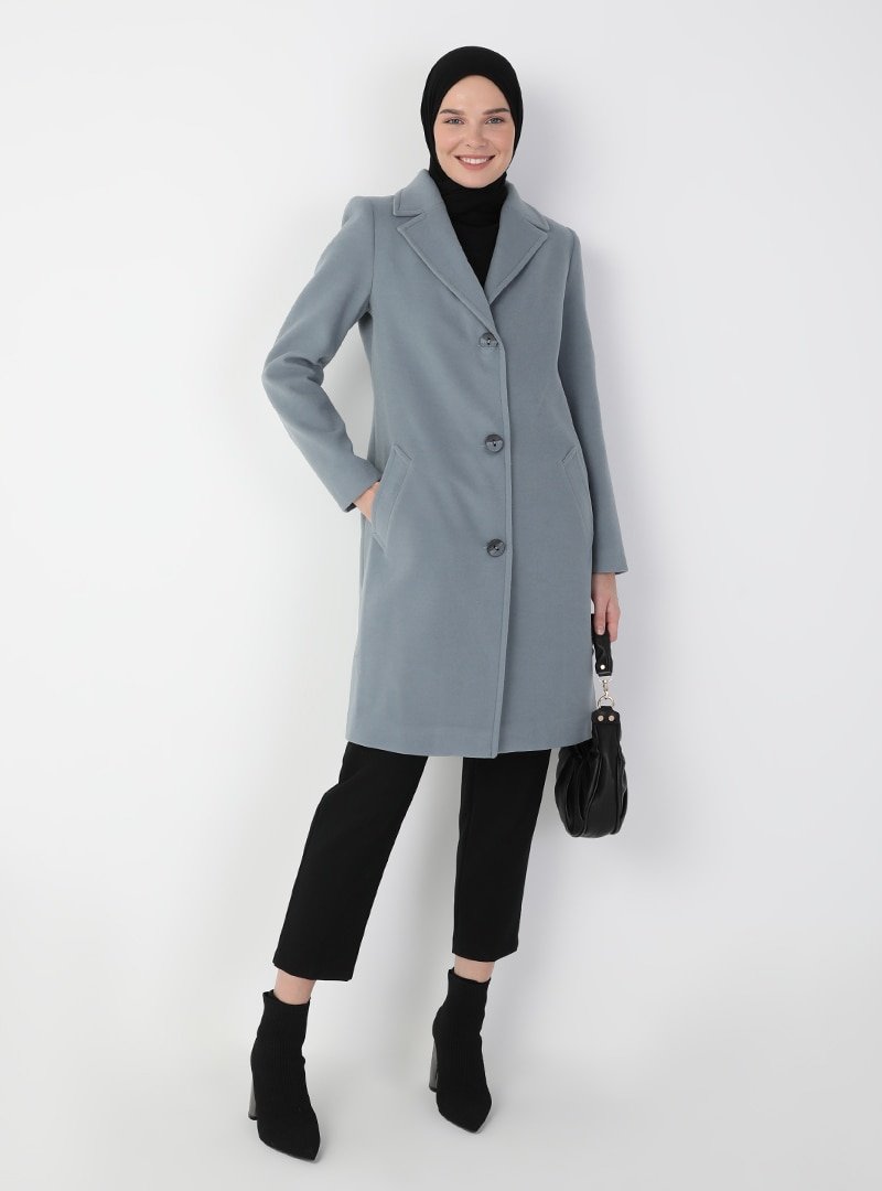 Concept By Olcay Mavi Düğme Detaylı Kaban
