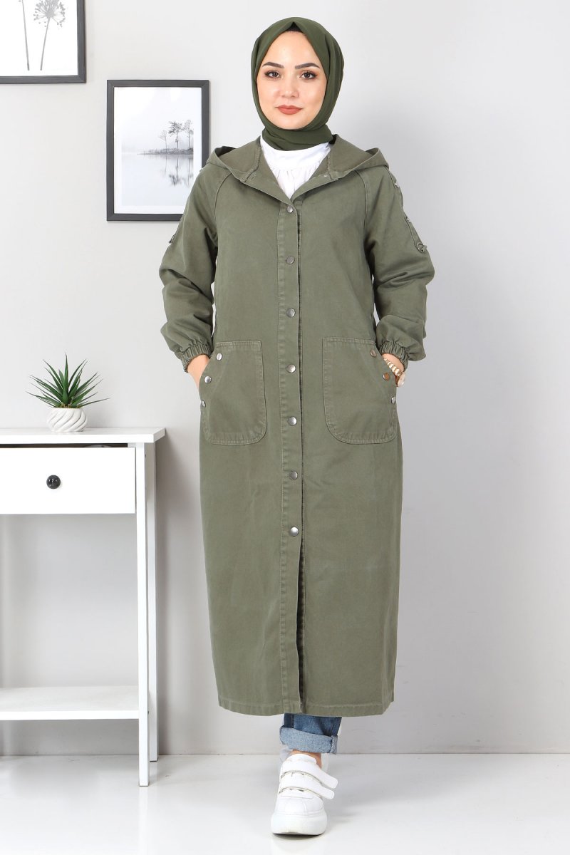 Tesettür Dünyası Haki Kolları Çıt Detaylı Kot Kap