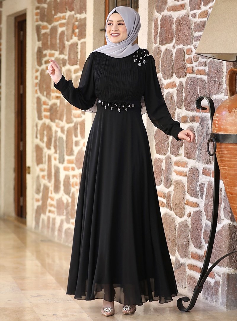 Amine Hüma Siyah Defne Abiye Elbise