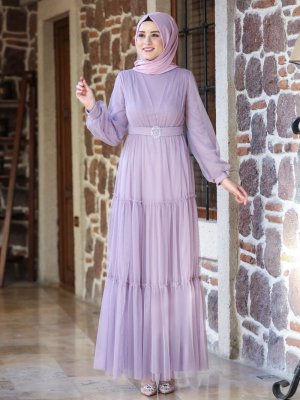Amine Hüma Lila Soft Abiye Elbise