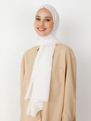 ELFECR Ekru İpeksi Taşlı Cazz Şal
