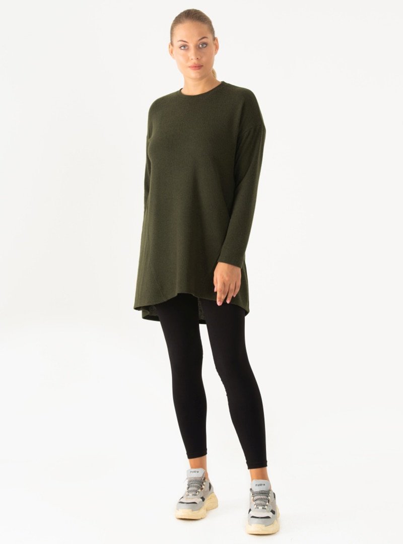 FLOWİST PLUS SİZE Haki Büyük Beden Yumoş Tunik