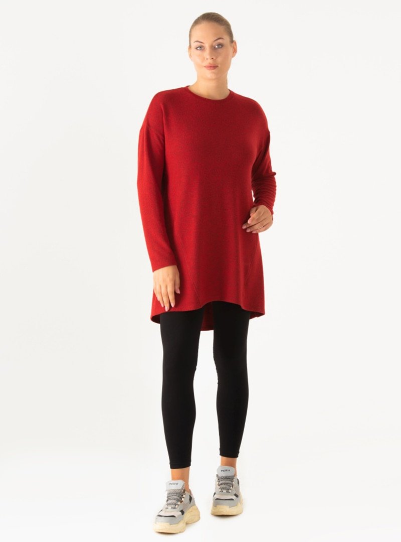 FLOWİST PLUS SİZE Bordo Büyük Beden Yumoş Tunik