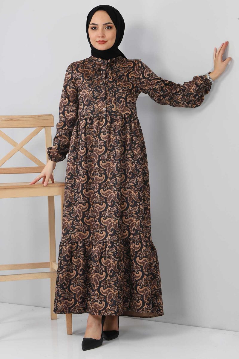 Tesettür Dünyası Siyah Şal Desenli Elbise