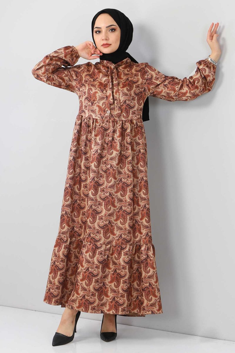Tesettür Dünyası Vizon Şal Desenli Elbise
