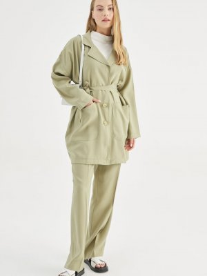 Hooopstore Haki Organik Kruvaze Blazer Ceket