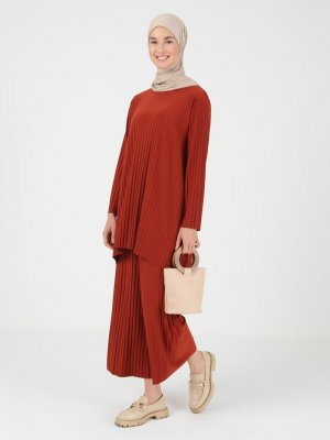 İLMEK TRİKO Kiremit Tunik & Pantolon İkili Takım