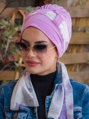 AİŞE TESETTÜR Lavanta Soft Hazır Fularlı Bone