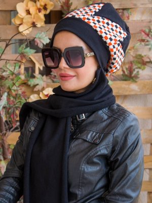 AİŞE TESETTÜR Siyah Dama Desen Bere