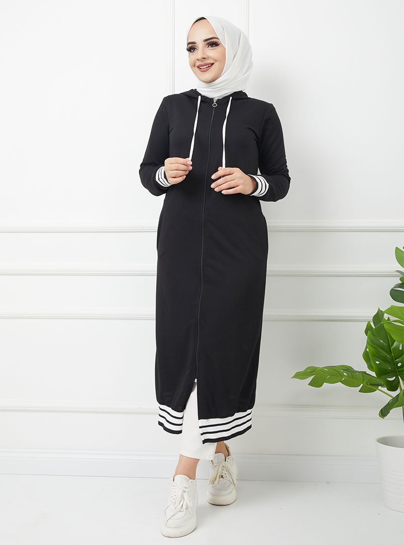 HAKİMODA Siyah Boydan Fermuarlı Ribanalı Kap
