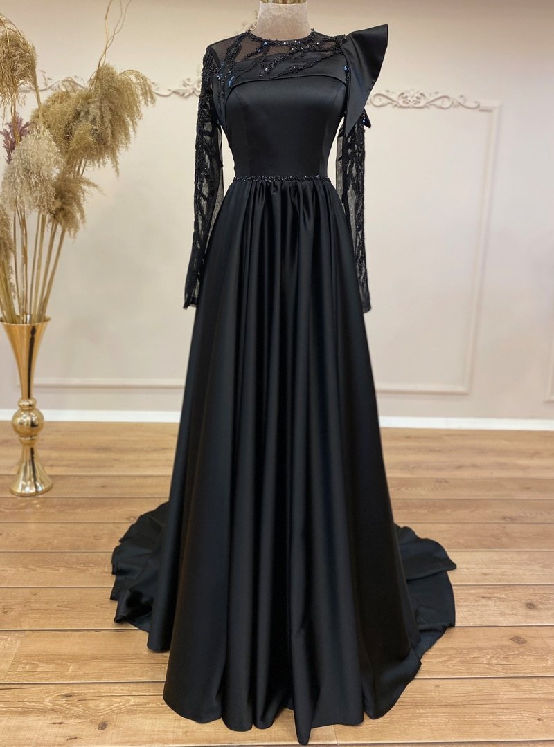 Gamze Özkul Siyah Mahra Transparan Abiye Elbise