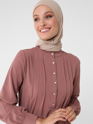 Refka Gül Kurusu Nervür Detaylı Kuşaklı Aerobin Tunik