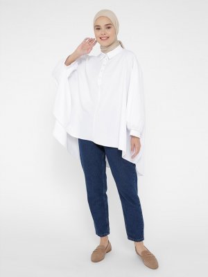 Benin Beyaz Yarasa Kol Arkası Uzun Poplin Tunik